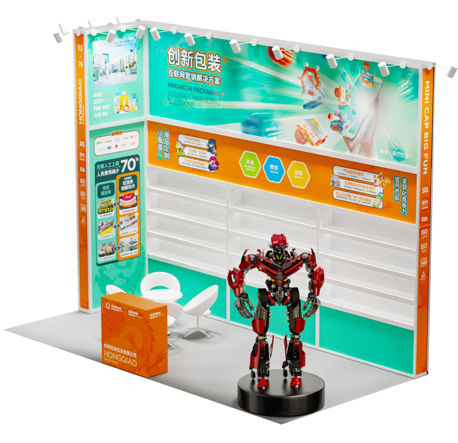 小瓶盖在E2馆-76号展台精彩亮相,为乳品行业带来全新的自动化罐装设备,以及小瓶盖积木包装;在追求高效率的同时,也为企业实现多元化、个性化的需求,为行业高质量发展贡献力量。